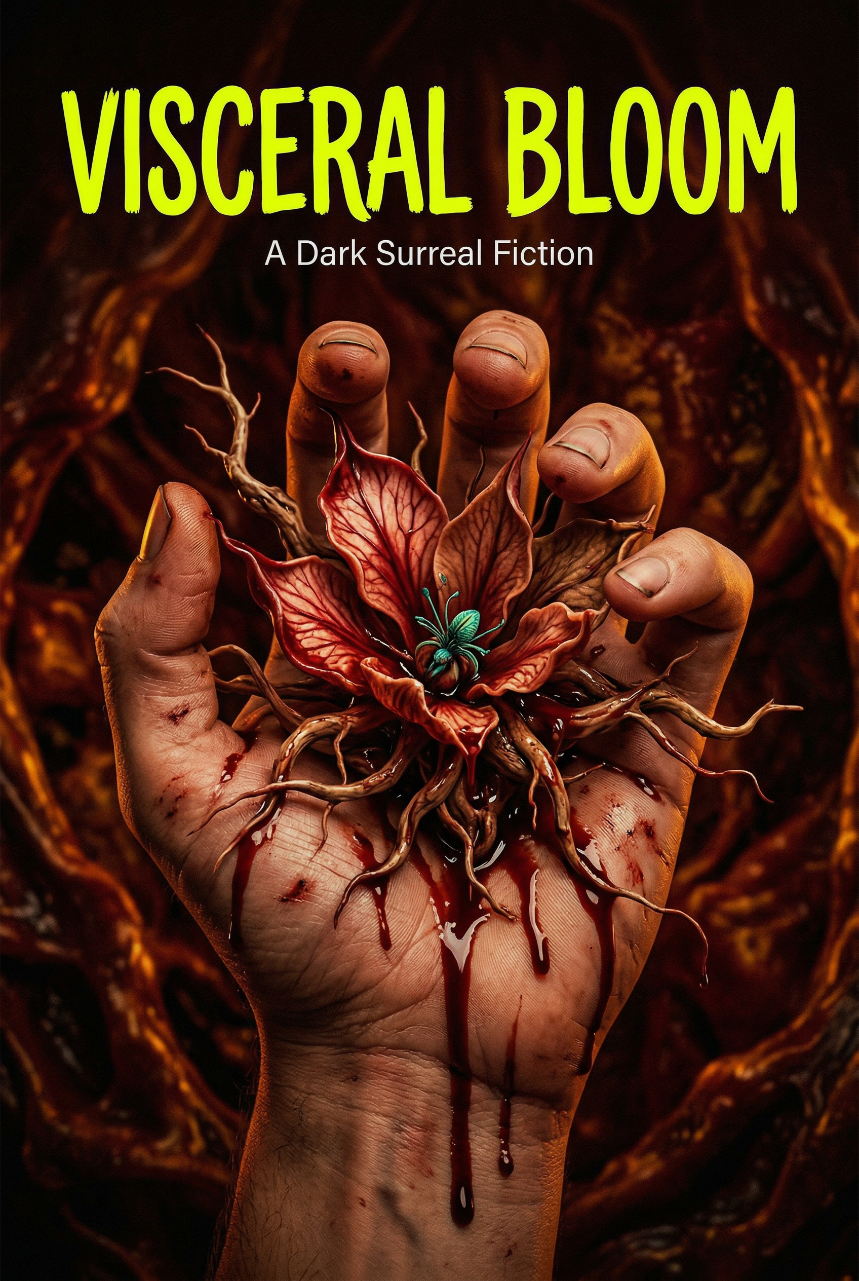In a decaying mansion, a desperate thirst for the forbidden leads to a grotesque ritual. A cracked teacup overflows with crimson, a single, unsettling eye staring from its depths, as a hungry hand reaches for the ultimate, visceral feast.