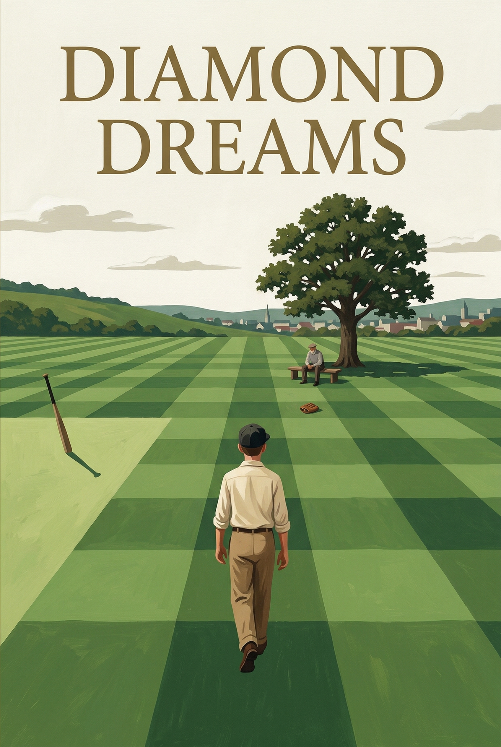 On a checkerboard baseball field, a young player kneels, cradling the earth, while others toil or stand in quiet contemplation. This evocative cover hints at a timeless story of ambition, hard work, and the enduring spirit of the game, exploring the dreams woven into the very fabric of the green diamond.