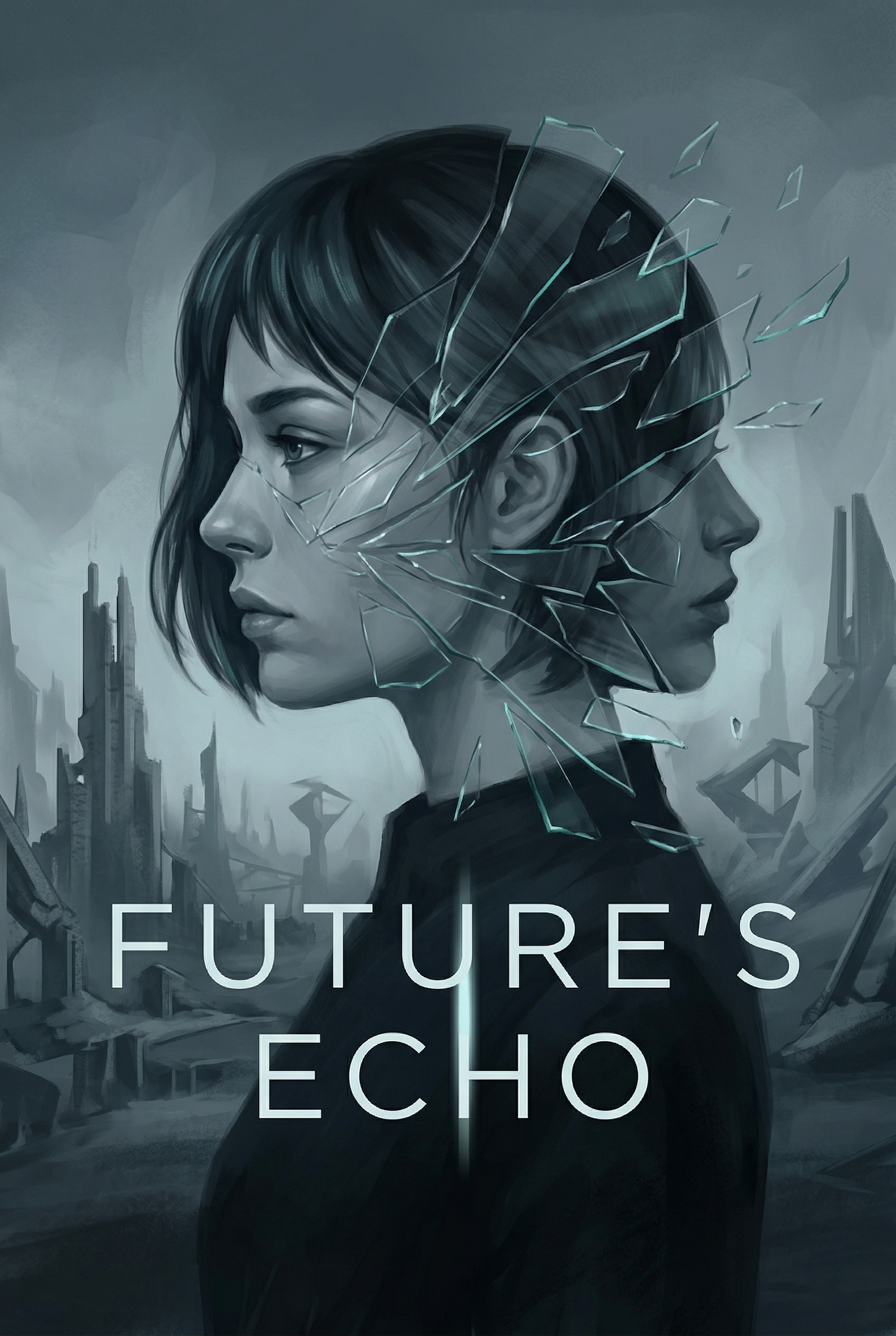 A lone woman stands against a crumbling futuristic cityscape, her reflection shattered into a ghostly echo, revealing a hidden truth or a fragmented identity. As shards of her past splinter, she must piece together who she is and what future she truly desires, before the echoes consume her entirely.